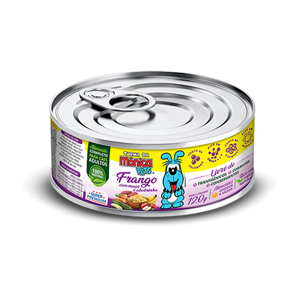 Proporcione uma alimentação saborosa e saudável para o seu melhor amigo com a Ração Úmida Turma da Mônica para Cães, sabor Frango com Maçã e Abobrinha. Este alimento super premium é formulado especialmente para cães adultos, garantindo uma refeição completa e equilibrada. Cada lata de 120 g é preparada com ingredientes de alta qualidade, oferecendo todo o sabor do frango, combinado com o frescor da maçã e o toque nutritivo da abobrinha.
