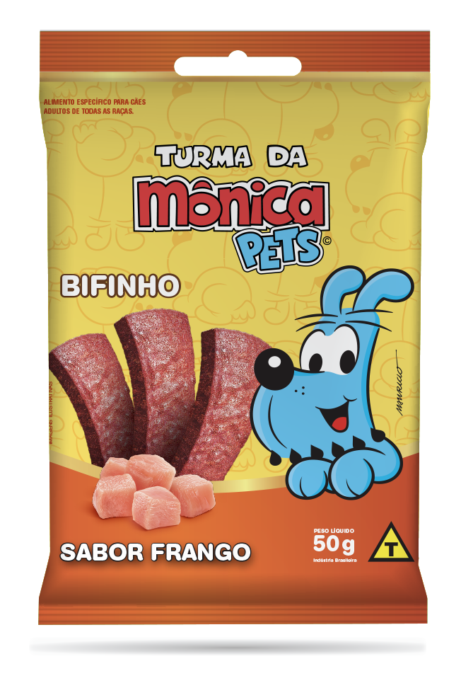 O Bifinho da Turma da Mônica é um petisco irresistível feito especialmente para cães de todas as raças. Com um sabor delicioso de frango, essa guloseima é perfeita para recompensar seu amigo de quatro patas, tornando cada momento mais especial. Com 50g de pura alegria, os bifinhos são macios e fáceis de mastigar, ideais para cães adultos que merecem um agrado. Além de saboroso, o Bifinho Turma da Mônica é elaborado com ingredientes selecionados, proporcionando uma experiência saborosa e saudável. Ofereça ao seu pet um lanche que combina qualidade e diversão, e faça parte da rotina de brincadeiras e carinho. Este produto é uma excelente opção para treinos, passeios ou simplesmente para demonstrar seu amor pelo seu melhor amigo.